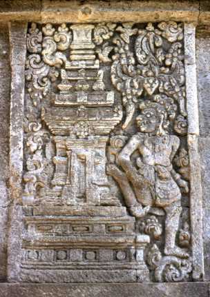 Relief panel, on the main shrine, depicting another Ramayånå scene. The building depicted is of the same architectural kind as Candi Såkå and other shrines of eastern Java.